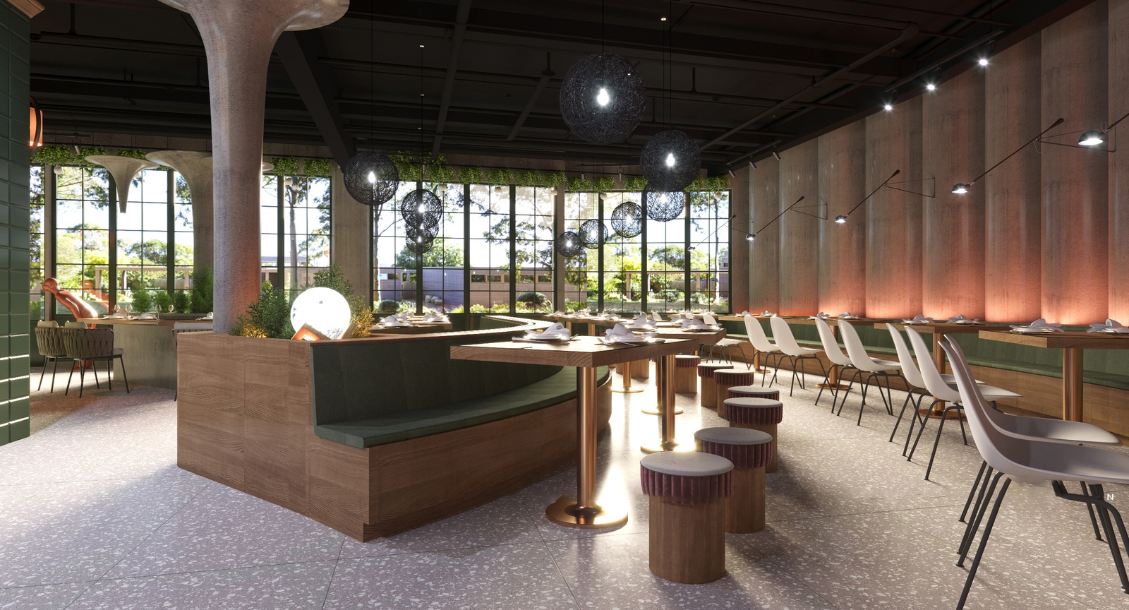 在意大利式西餐厅风格基础上,融入中式设计理念,既营造浪漫的用餐环境,又增加用餐环境的熟悉感。在实际设计装修过程中,可根据餐厅定位,动态调整各个细节部分的设计元素,上可实现典雅、雍容,中可实现浪漫、简约,下可实现极简等不同风格效果。